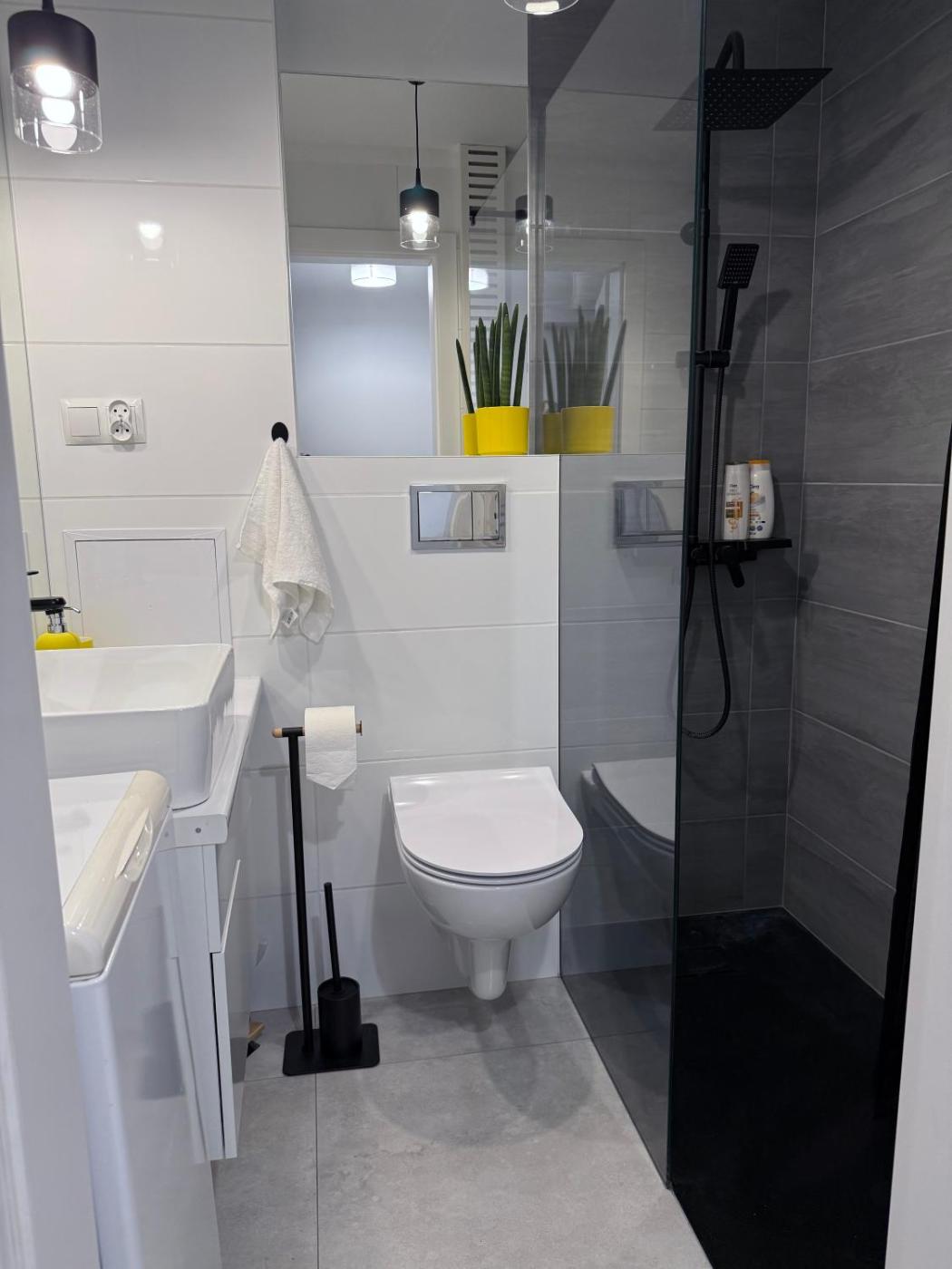 Apartament z 1 sypialnią. This air-conditioned apartment comprises 1 living room, 1 separate bedroom and 1 bathroom with a shower. In the kitchenette, guests will find a stovetop, a refrigerator, a dishwasher and kitchenware. The apartment provides a washing machine, a seating area, a dining area, a wardrobe and a flat-screen TV. The unit offers 2 beds. Apartament - 4 osobowy. Powierzchnia pokoju ok.: 42 mkw.