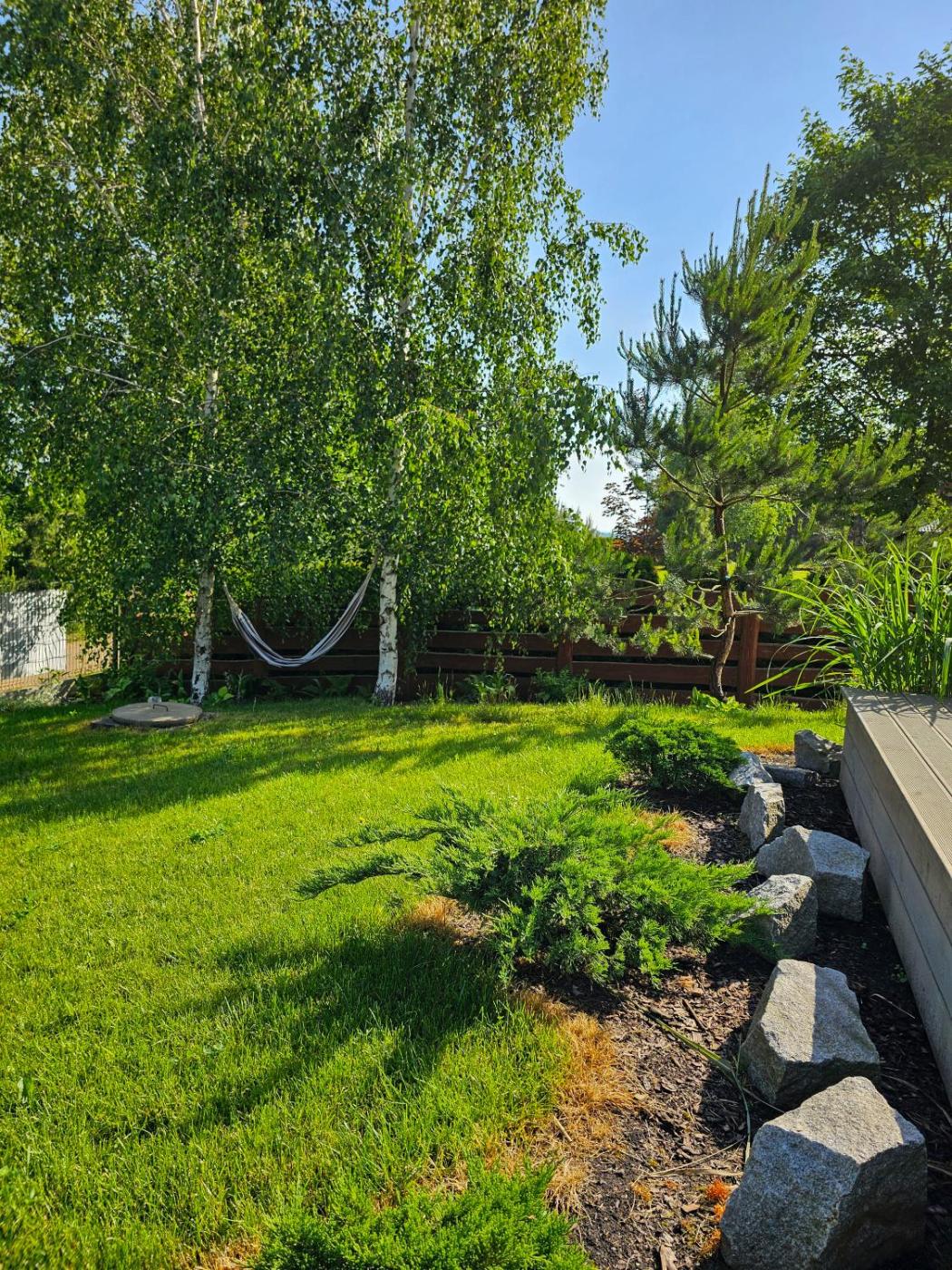 Dom z 2 sypialniami. This holiday homes special features are the sauna and the fireplace. Featuring a private entrance, this air-conditioned holiday home is comprised of 1 living room, 2 separate bedrooms and 1 bathroom with a shower and a hairdryer. Guests will find a stovetop, a refrigerator, kitchenware and an oven in the well-equipped kitchen. The holiday home also has a barbecue. Boasting a terrace with lake views, this holiday home also offers soundproof walls and a flat-screen TV with streaming services. The unit offers 4 beds. Dom wakacyjny - 6 osobowy. Powierzchnia pokoju ok.: 55 mkw. ;